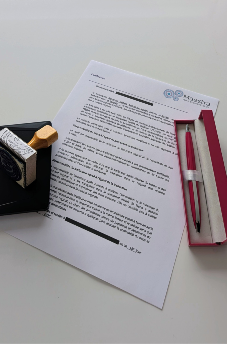 Certificates (birth, marriage, divorce and death), divorce decrees, diplomas, certificates of studies, transcripts, account statements, driving licenses, passports, etc.